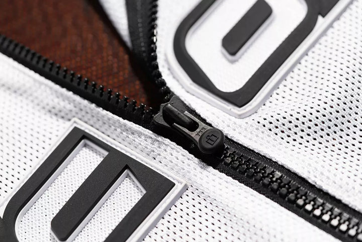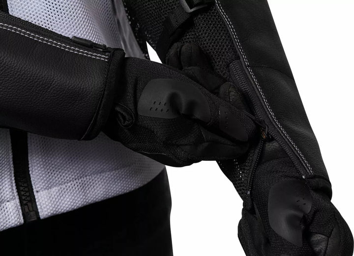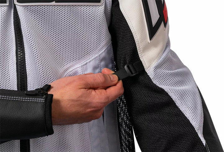 Chassi de malha de poliéster 300d e ferro durável, 1,2 mm-1,4 mm de couro TracSpec ™ na zona de colisão primária, cintura ajustável e cinta de braço, fato esportivo icon®, zíperes YKK®, protetor traseiro EN 1621-2 Nível 1, EN170-70-2