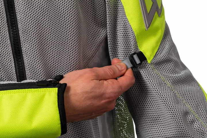 Chassi de malha de poliéster 300d e ferro durável, cintura ajustável e cinta de braço, icon® Sport Fit, Zippers YKK®, Protetor Back EN 1621-2 Nível 1, EN 17092-4: 2020-A Classe