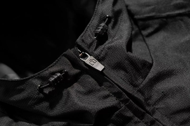 Lineador de colete isolado removível, reforços internos de poliéster 300D, chassi à prova d'água/respirável Hycor ™, aberturas de pit de grandes dimensões, encaixe relaxado icon®, roll e capuz de estrondo, protetor traseiro EN 1621-2 Nível 1