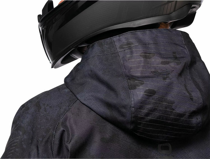 Lineador de colete isolado removível, reforços internos de poliéster 300D, chassi à prova d'água/respirável Hycor ™, aberturas de pit de grandes dimensões, encaixe relaxado icon®, roll e capuz de estrondo, protetor traseiro EN 1621-2 Nível 1