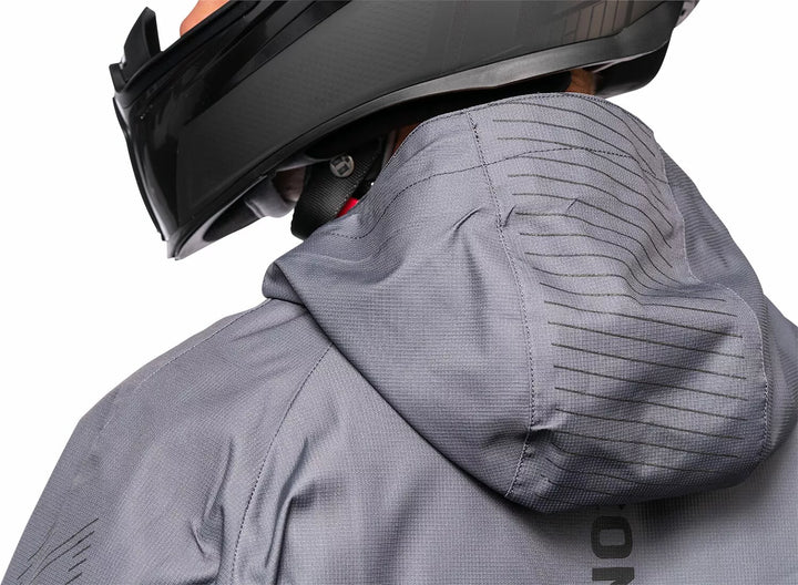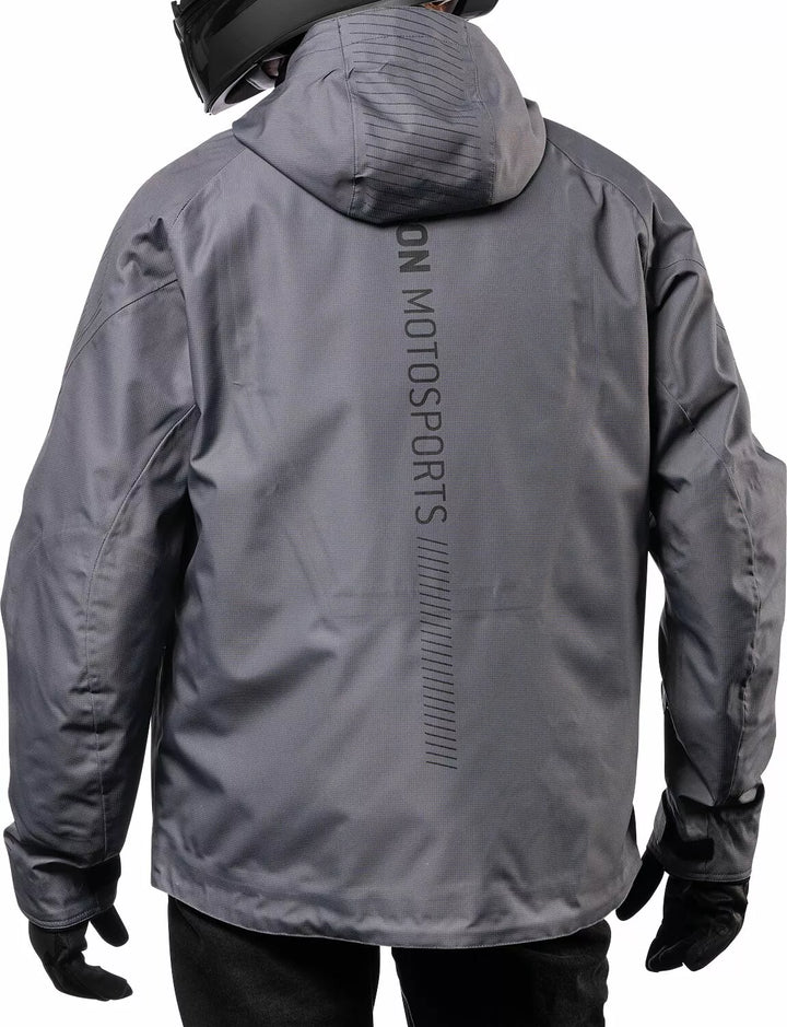 Lineador de colete isolado removível, reforços internos de poliéster 300D, chassi à prova d'água/respirável Hycor ™, aberturas de pit de grandes dimensões, encaixe relaxado icon®, roll e capuz de estrondo, protetor traseiro EN 1621-2 Nível 1
