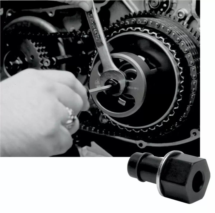 Para aplicativos XL '91 -'03, a porca do compressor deve ser usada em conjunto com a ferramenta de compressor, usada para liberar a mola da embreagem para que o anel de retentor possa ser facilmente removido e instalado, fabricado nos EUA.