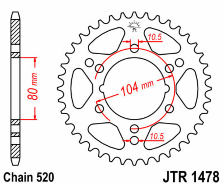 Com a tecnologia de borda de borda principal e usando apenas o mais alto grau de ligas de aço especial, o JT Sprock produz uma gama completa de medidas de motocicleta de qualidade superior e abelhas de reúne. Chain de aço C49 de alto carbono de alto carbono durável: 520.0 Material: Aço Retanco_prolet_teeth_count: 42.0 rear_proet_type: 1478 rear_propet_sserrion: padrão