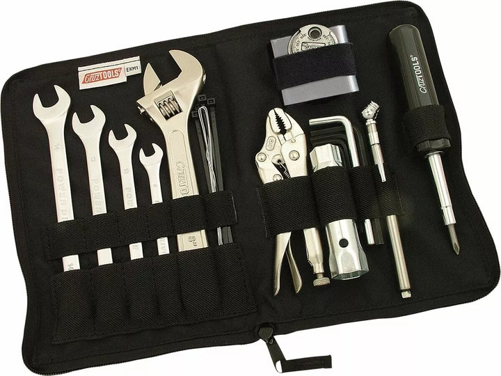 Provides Combination wrenches, an adjustable wrench, lureing pliers, 6-in-1 screwdriver, kick plug wrench, tire gauge, duct tape, zip ties, mechanics wire, and a shop towel, all organized in a heavy-duty zipper pouch Kawasaki, Yamaha and Suzuki, Light Weight and Very Compact for Road or Trail-Side Repairs and Adjustments, A High-Quality Upgrade From an Oem Tool Kit For Motocicleta, ATV e neve, garantia vitalícia-não as perguntas-não perguntas feitas