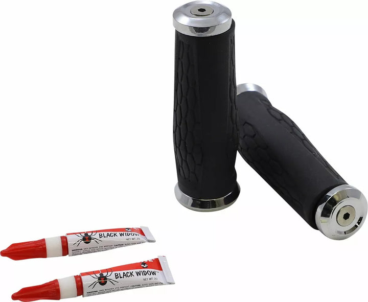 Contoured to fit Perfectly in your hands for unbeatable comfort, ergonomic design features a wided diameter for thumb, index and middle fingers and a taper profile for ring and pinky fingers to match the natural shape of your hands, premium, duler compound compound compound an Ultra Soft, Cushiony Feel for All-Day Vibration and Dampening Comfort, Combination of Smooth and "Hex" Shaped Embossed Rubber Provides Amazing Grip and Distinct Styling, Feature Tampas finais montadas em barras que podem ser facilmente substituídas