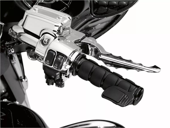 Estilizado para combinar com os populares ISO ᆴ -PEGs, a área embutida ISO ᆴ -Pads permite o fluxo de ar resfriado em clima quente, amortece a vibração do guidão enquanto fornece uma aderência certa, aceita prontamente o chefe de trocamento ISO (vendido separadamente)