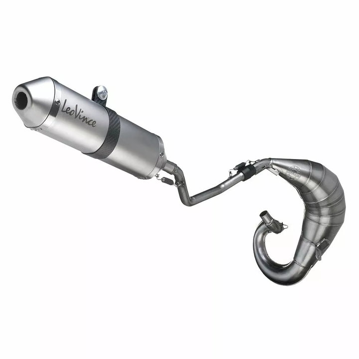 Sistema de exaustão completo de aço inoxidável, para todos os motores de 50cc de 2 tempos destinados a off-road e Street, o Leovince desenvolveu a nova mão fabricada em x-luta, um sistema aprovado pelo E, perfeito para quem quiser personalizar Mer Bike. Silenciador reapacável em aço inoxidável, soldas de Tig, alça de jejum de carbono completo, logotipo da laser gravado