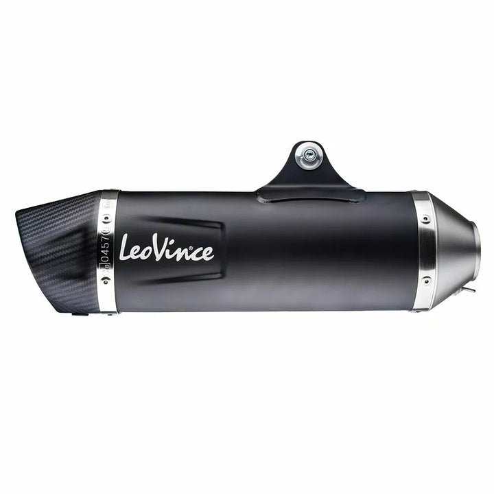 Nero se junta ao lado sombrio, estilo agressivo e linhas nítidas., Leovent Nero é o novo silenciador de motos e maxi-socooters com uma aparência escura e moderna, o resultado da constante pesquisa de aços de qualidade e processos exclusivos. Cap, tinta preta à base de cerâmica metálica, acabamento fosco, logotipo da luta gravada a laser