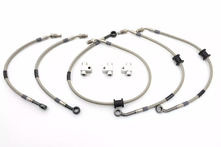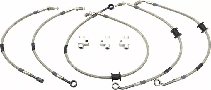 Melhoria significativa da resposta de frenagem., Ponto de frenagem estável, nenhuma extensão do Hosen a temperaturas mais altas., TRW Motorcycle Aço as linhas de freio trançado são adequadas para todos os abdominais e sistemas de freio combinados duplos, mesmo para os modelos de moto mais recentes. Padrão de segurança do veículo FMVSS 106., as mangueiras de freio trançadas de aço de motocicleta TRW vêm com tampa transparente e acessórios de alumínio na cor do titânio como padrão.