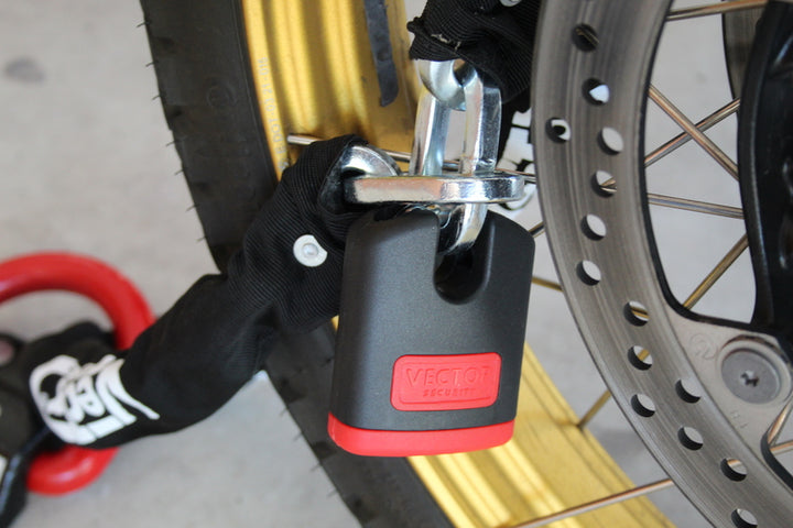 Vector Pro Chain Lock é um Solução de segurança compacta, mas poderosa, ideal para motociclistas e ciclistas que querem um bloqueio suave e confiável para uso diário.