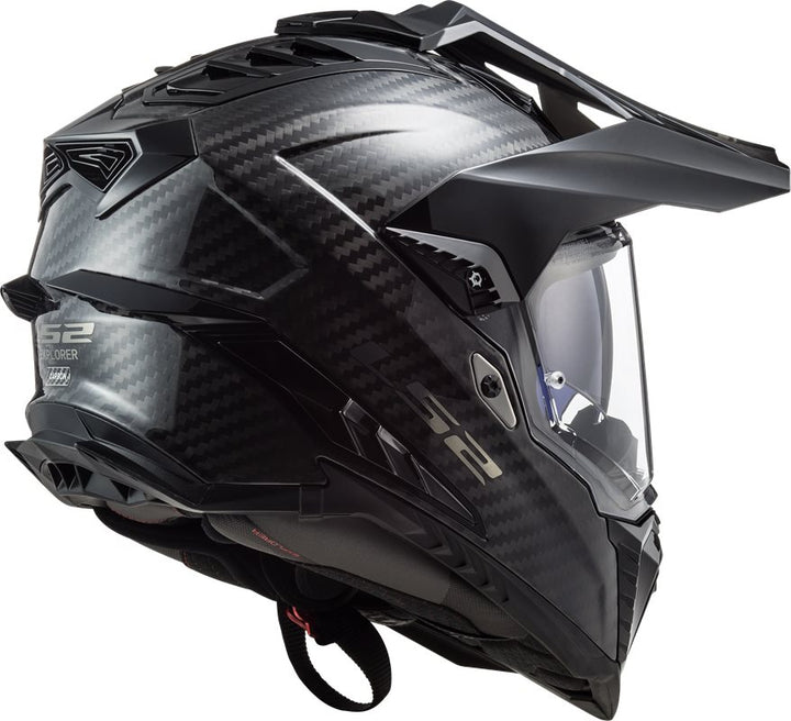 LS2 Adventure Mc-Hjälm Explorer Carbon i sidovy med robust kolfiberdesign och justerbart visir. Passar både dam och herr.