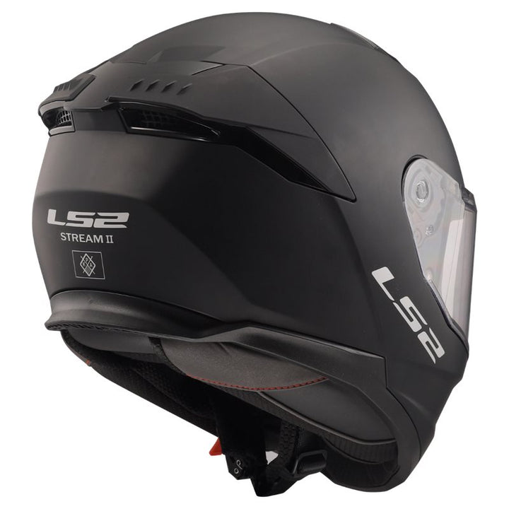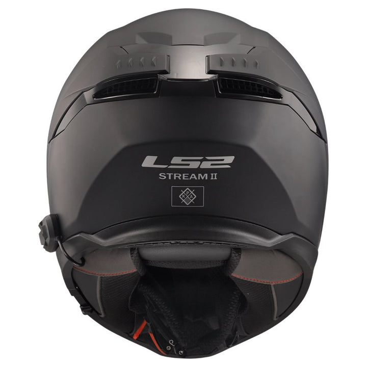 Baksida av LS2 Integral Mc-Hjälm Stream II Matt Svart med ventilationsöppningar och logotyp för extra komfort och stil.