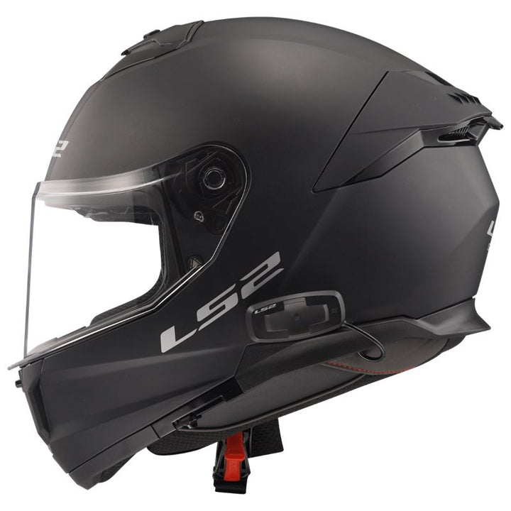 Sido vy av LS2 Integral Mc-Hjälm Stream II Matt Svart med visir och justerbar hakrem för säker och bekväm passform.
