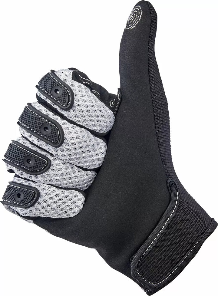 Synthetic Suede Palm Features Two-Way Stretch for a Snug, Comfortable Fit, Three-Ply, One-Piece Vented Polyester Back and Thumb Construction for Maximum Airflow, Flexible Thermoplastic Rubber Knuckle Guards and Shield Logo, Lycra® Expans and double-free polyester stitching, Thermoplastic Rubber Knuckle Guards on the Back of the Glove Provide Protection from Rocky Roost and Airborne Road Debris, A Double-Stitched Reinforcing Panel on the O polegar e o dedo indicador acrescenta uma costura rica nos dedos e polegares que você opera telas inteligentes
