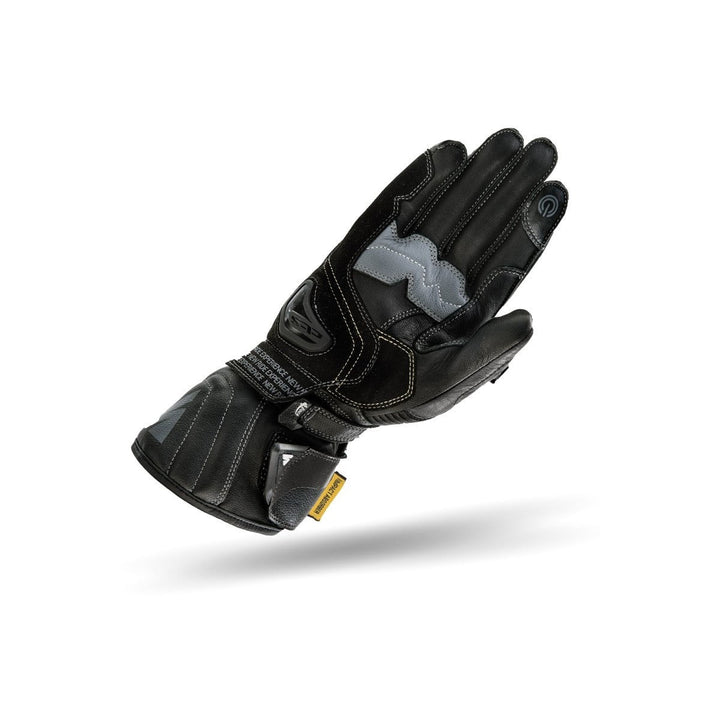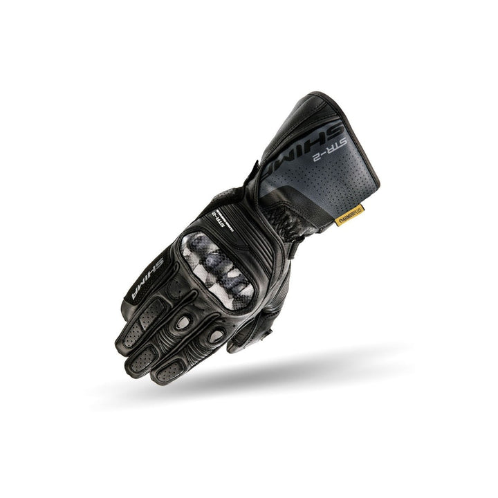 O Shima STR-2 tem couro perfurado nos dedos para uma ventilação ideal durante os dias quentes. As costuras usadas neste modelo são externas para eliminar a pressão nos dedos e são projetadas com uma estrutura resiliente, o que facilita o trabalho nos controles de engrenagem em viagens mais longas. Muitas dobras e inserções de material flexível facilitam a adaptação da luva à posição variável da mão. Além disso, o acúmulo de materiais não apenas aumenta a mobilidade em locais mais expostos à tensão, mas também tem uma função protetora. Um remendo sem deslizamento montado no interior da mão impede que as garras deslizem e ajudam a estabilizá -lo.