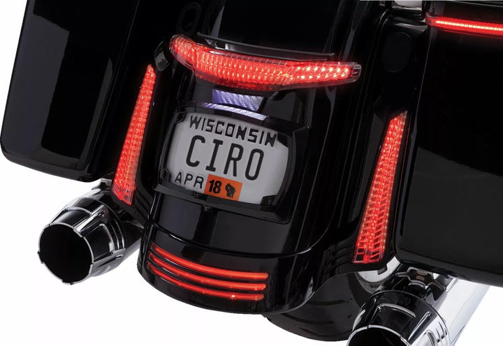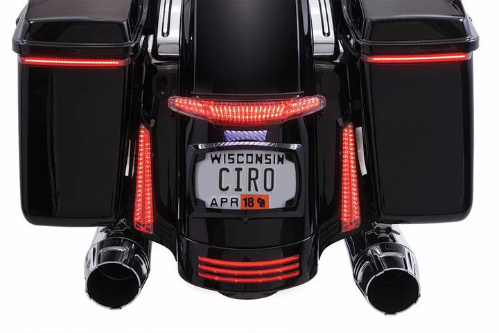 Substitui o conjunto de iluminação OEM inteiro para uma transformação completa da extremidade traseira, apresenta uma corrida de LED brilhante, luz de giro e freio, a montagem da placa possui prendedores escondidos para uma aparência extra limpa, instalação plug-and-play