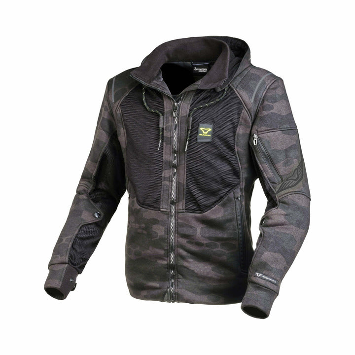 Jaqueta Macna Breeze. Jaqueta ventilada com zíper e capuz removível. Os painéis de ventilação promovem a circulação de ar adequada em dias quentes. Ele também contém proteção certificada por CE em ombros e cotovelos.