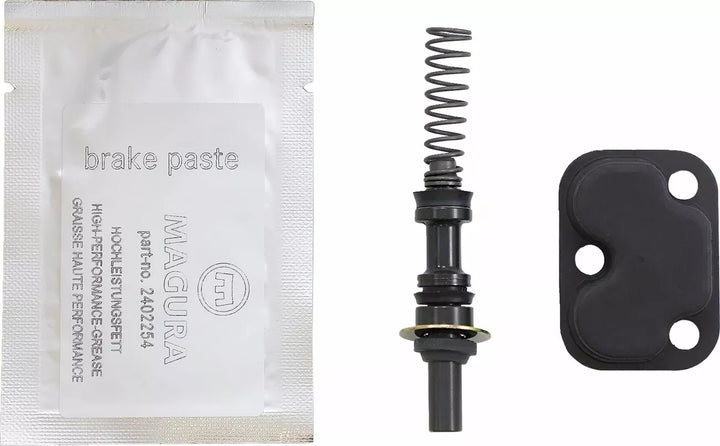 Tudo o necessário para uma revisão completa do cilindro mestre, o kit inclui pistão com focas e mola, fole do pistão, fole de recipiente, anel de vedação para parafuso de montagem de pistão e pasta de freio de silicone