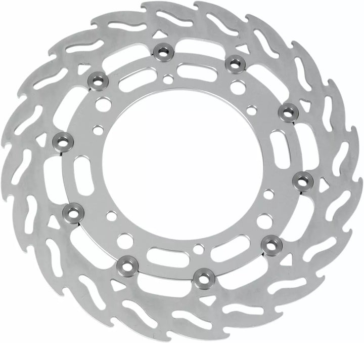 Flame Discs Are Made From Hardended and Refined Chrome-Molybdenum Alloy Steel, Material Ensures Extremely Little Rotor Wear and High-Performance Braking, Flame Discs Are Precision Lasercut, CNC-DRilled and FLAPACE-MACHIND Surface Are Designed for Efficient Cooling and Disc Cleaning to Evacuate Water and Mud, Discs Can Be Used With Any Type of Brakepad, Including Sintered, Aramid, and Ceramic Carbon Pads