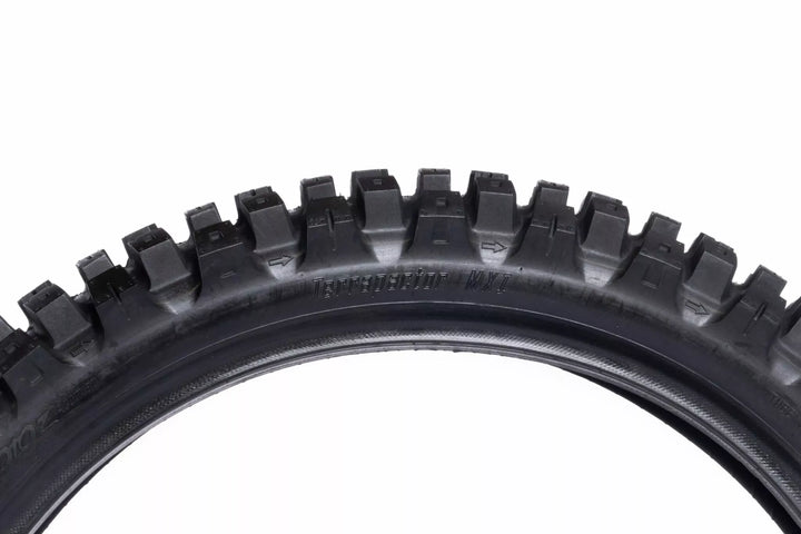 A mais recente adição à faixa de pneus Motoz MX é o pneu Terrapactor MXI (MX Intermediário). Projetado com uma carcaça leve e projetada para se destacar em terrenos intermediários a duros (mistura de solo solto e embalado, solo compactado e sulcos profundos). A referência para o desempenho dos pneus MX em vários tipos de terreno!, O pneu MXI se destaca com seu padrão distinto, criado especificamente para oferecer desempenho superior. Ao incorporar estrategicamente pontos flexíveis dentro da carcaça e dos botões, o pneu MXI fornece previsibilidade e aderência aprimorada de canto, adaptando e flexionando de acordo com o terreno para dar maior controle e confiança durante a pilotagem. Hard Packed Soil and Deep Heavy Ruts), Full Range from Mini-Cross to Big Bikes (15 Different Sizes), Two Front Tyre Sizes, 80/100-21 For the Most Aggressive On Track Performance and the All-New 90/100-21 With a Taller Profile for Increased Conditions, Unique Flex Zones Built Into Carcass and Knobs For Improved Feel and Compliance, Flex Zones Incorporated Into All Treat Rows to Improve Corning Feel and Drive, All New Inner Sidewall Construção para melhorar a conformidade