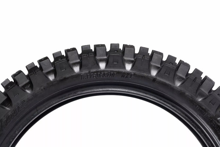 A mais recente adição à faixa de pneus Motoz MX é o pneu Terrapactor MXI (MX Intermediário). Projetado com uma carcaça leve e projetada para se destacar em terrenos intermediários a duros (mistura de solo solto e embalado, solo compactado e sulcos profundos). A referência para o desempenho dos pneus MX em vários tipos de terreno!, O pneu MXI se destaca com seu padrão distinto, criado especificamente para oferecer desempenho superior. Ao incorporar estrategicamente pontos flexíveis dentro da carcaça e dos botões, o pneu MXI fornece previsibilidade e aderência aprimorada de canto, adaptando e flexionando de acordo com o terreno para dar maior controle e confiança durante a pilotagem. Hard Packed Soil and Deep Heavy Ruts), Full Range from Mini-Cross to Big Bikes (15 Different Sizes), Two Front Tyre Sizes, 80/100-21 For the Most Aggressive On Track Performance and the All-New 90/100-21 With a Taller Profile for Increased Conditions, Unique Flex Zones Built Into Carcass and Knobs For Improved Feel and Compliance, Flex Zones Incorporated Into All Treat Rows to Improve Corning Feel and Drive, All New Inner Sidewall Construção para melhorar a conformidade