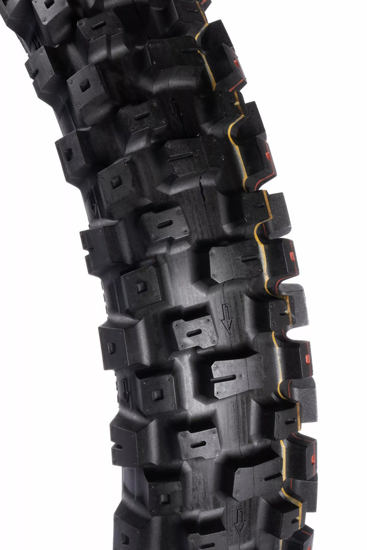 A mais recente adição à faixa de pneus Motoz MX é o pneu Terrapactor MXI (MX Intermediário). Projetado com uma carcaça leve e projetada para se destacar em terrenos intermediários a duros (mistura de solo solto e embalado, solo compactado e sulcos profundos). A referência para o desempenho dos pneus MX em vários tipos de terreno!, O pneu MXI se destaca com seu padrão distinto, criado especificamente para oferecer desempenho superior. Ao incorporar estrategicamente pontos flexíveis dentro da carcaça e dos botões, o pneu MXI fornece previsibilidade e aderência aprimorada de canto, adaptando e flexionando de acordo com o terreno para dar maior controle e confiança durante a pilotagem. Hard Packed Soil and Deep Heavy Ruts), Full Range from Mini-Cross to Big Bikes (15 Different Sizes), Two Front Tyre Sizes, 80/100-21 For the Most Aggressive On Track Performance and the All-New 90/100-21 With a Taller Profile for Increased Conditions, Unique Flex Zones Built Into Carcass and Knobs For Improved Feel and Compliance, Flex Zones Incorporated Into All Treat Rows to Improve Corning Feel and Drive, All New Inner Sidewall Construção para melhorar a conformidade