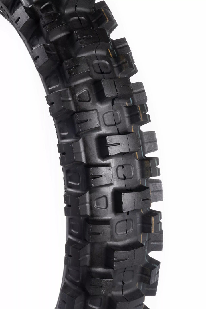O novo pneu do Terrapactor MXS (MX Soft) é a nossa oferta mais inovadora por pilotagem de terrenos macios, especificamente adaptada para solo macio, trilhas mistas de lama/seco., O Terrapactor MXS possui uma construção leve. Objetivo principal de fornecer desempenho excepcional em terrenos macios. O MXS apresenta um padrão de tratamento aberto e robusto, projetado para evitar o acúmulo e manter o tratamento limpo, além de garantir uma aderência firme, mesmo em condições pegajosas. To enhance the Tyre's flexibility and grip, we have integrated cutting-ed Treat flex zones within the tyre's carcass and knobs., Application-MX, Soft Terrain (Soft soil, mixed mud/dry), Two Front and the TRACK AND 100-21 for Traditional Feel Tell Taller Profile for Increased Contact Patch and Better Feel and Feedback Through Hard Edged Ruts, All New Mx Compound For Improved Longevity and Durability, Light Weight Carcass, Flex Zones Incorated Into Carcaça para melhorar a aderência e a redução da sensibilidade da sensação e aderência das curvas e