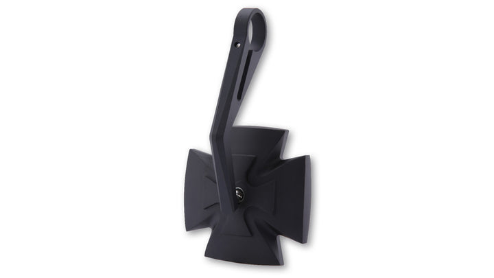 Espelho final do guidão do Highsider em design cruzado com uma cabeça de alumínio. Adequado para guidão com um diâmetro interno de 12 a 21 mm. Pode ser usado para o lado esquerdo e direito, aprovado.