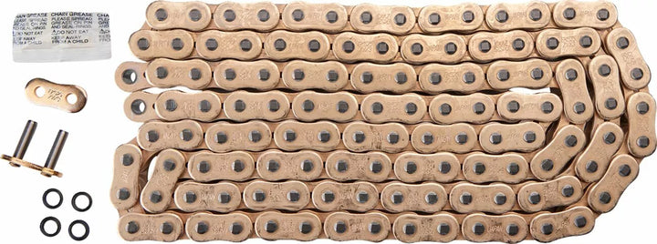 Para a concorrência e a substituição do OEM, minimize a depuração entre as placas, a rigidez e o peso aprimoradas, o anel nx dura 15% mais que as cadeias anteriores da série ZVX, inclui link mestre de estilo rive