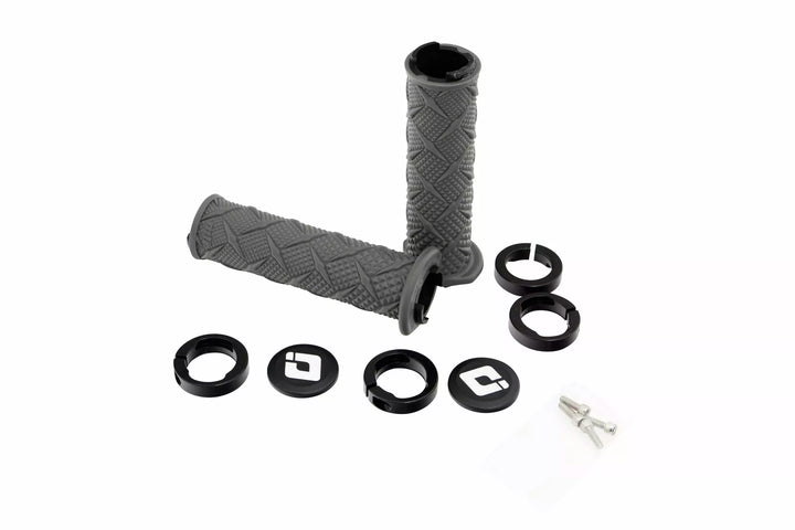 Designed to Provide the Ultimate in Control under any condition, The New X-Treme Lock-On Grips for ATVS Combines An Aggressive Knurled Surface Pattern for Optimal Traction with Large Diamond-Plate Pads for Extra Comfort., Diamondized Surface Pattern Tapers Tapers Tapers Tapers Tapers Tapers Talk Pads Provide Extra Padding and Gripping Surface, Scaled Down Flange Provides Just Enough Protection Without Getting In The Way of Other Controls, Easy Installation Allows Grips to Be Changed in Seconds, 100% Guaranteed O desempenho sem deslizamento, inclui, inclui, inclui, inclui o comprimento da aderência, incluindo grampos e o espaço ocupado no guidão quando instalado corretamente.