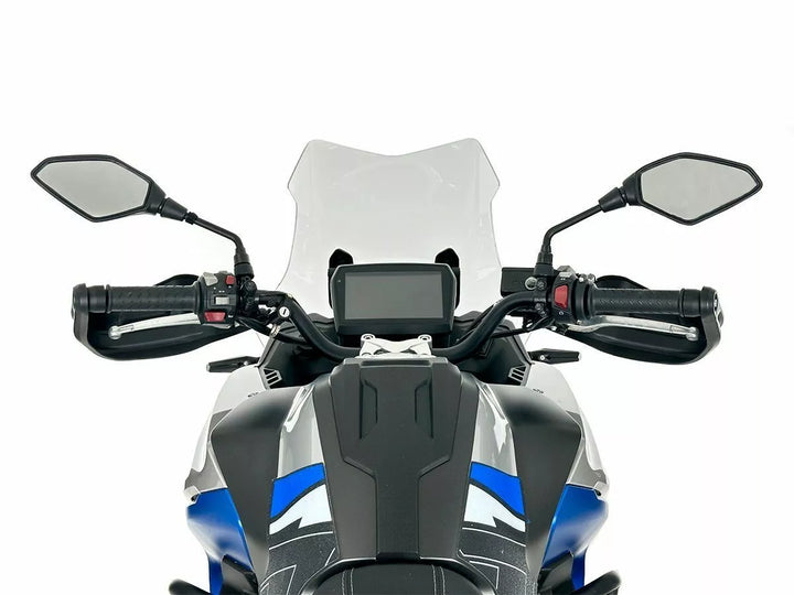 Made Following the StrICTest Safety Standards and Respect The Know-HOW, Which Guarantees Maximum Resistance and Transparency., Thanks to this Windshield, Annoying Turbulence on the Helmet will be eliminated, as will the air on your should be finally Greater Protection Offered by the Caponord Screen, The Passenger Will Also Enjoy the Journey in Maximum Comfort., The Design, Studied in Detail, Fits Perfectly with the line of the motorbike, giving it an even more captivating appearance.