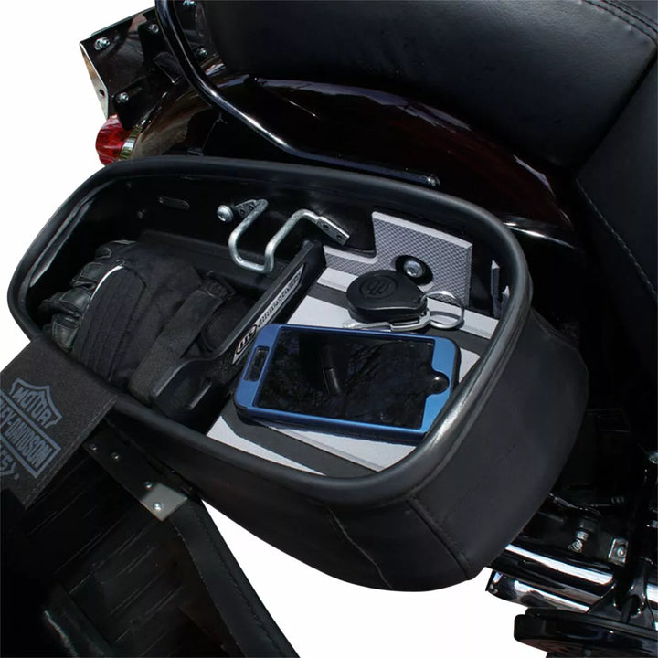 Instalação fácil e sem ferramentas para manter os pertences protegidos e acessíveis em seus alforjes, leve a prateleira rapidamente quando sempre que precisar, antimicrobiano para resistir a mofo e bolor, fabricado nos EUA