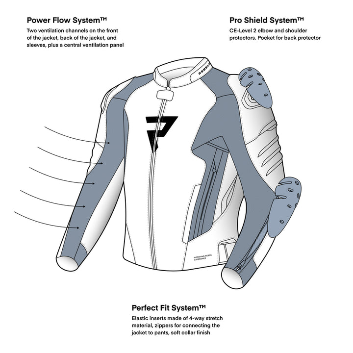 O Jacket Jacket Rebelhorn Veloce oferece, graças ao seu corte bem pensado, conforto para uso diário e em turnê para quem prefere a segurança oferecida por roupas de couro. Quando combinado com as calças Veloce, ele cria uma fantasia de duas partes. O uso de inserções de alongamento de 4 vias garante um ajuste ideal. A jaqueta também possui um sistema de ventilação avançado.