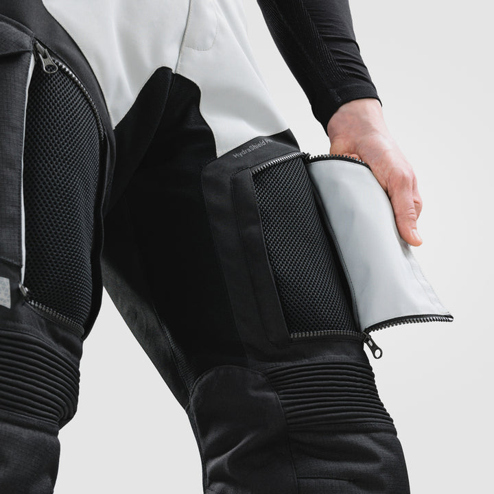Rebelhorn Cubby V são calças de motocicleta turísticas de três camadas criadas para motociclistas que viajam sob diferentes condições. Graças à moderna Membrana Hydrashieldtm Pro e soluções inovadoras, as calças oferecem segurança e conforto de direção. Um sistema de ventilação avançado e isolamento removível tornam essas calças prontas para cada aventura, independentemente do clima.
