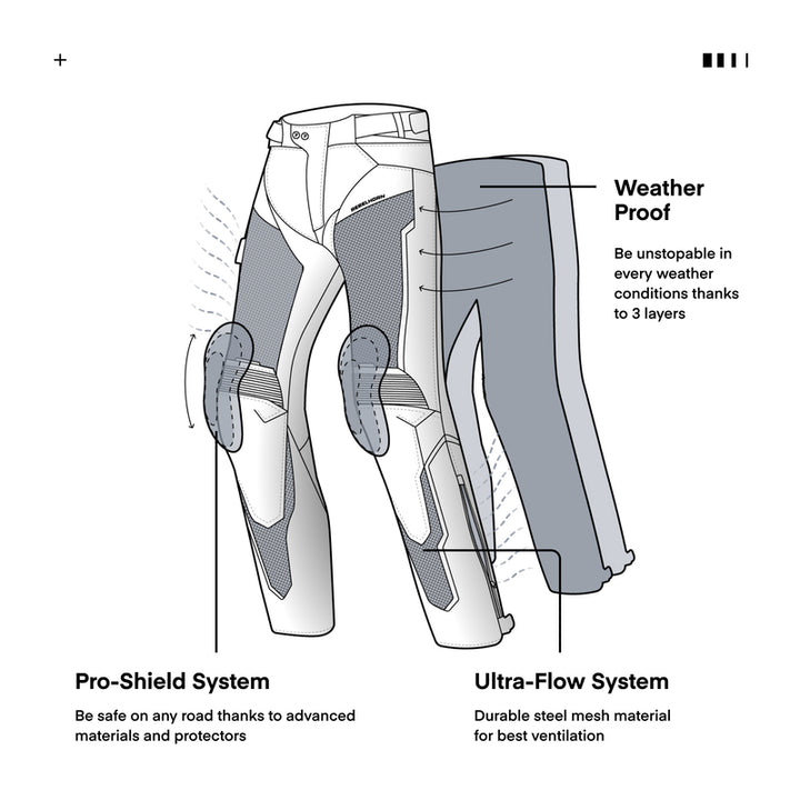 Zíper durável e funcional (360 ° + um mais curto) para conectar a jaqueta com calças.