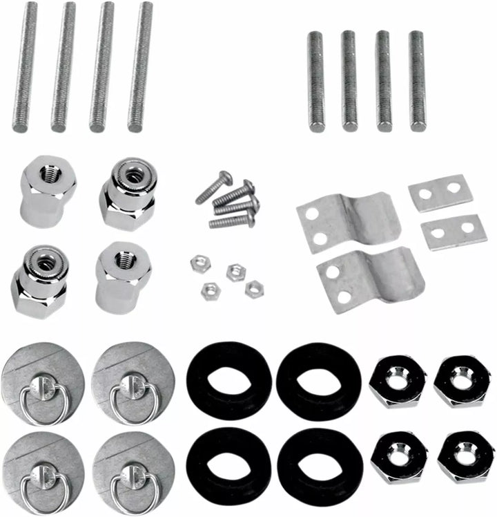 Os postos de encaixe e os prendedores substituem os parafusos do strut e permitem que você use ou tire as alforjes com uma rápida reviravolta dos prendedores QTL (truque de quarto de volta); Inclui quatro postes de ancoragem com fixadores, espaçadores, ilhós de alforjes, clipes de suporte, nozes/parafusos/prendedores necessários e instruções, o kit de post de encaixe deve ser usado em conjunto com o Saddlebag Support Support Brack; Pode ser usado para montar as selas de acessórios H-D e H-D (exceto as sacolas 1200s) sem a compra de suporte adicional