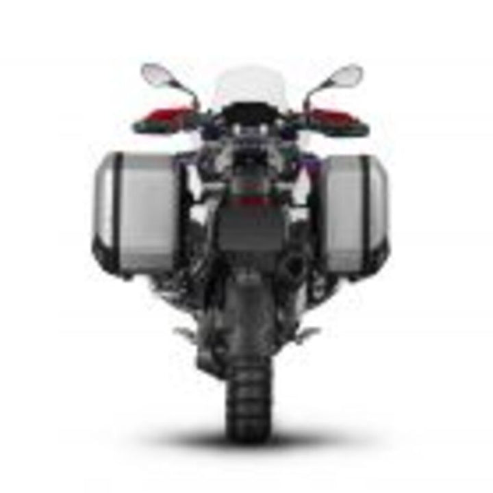 Suportes para instalar panniers na lateral da moto.