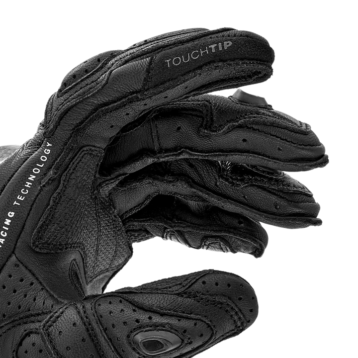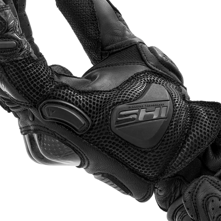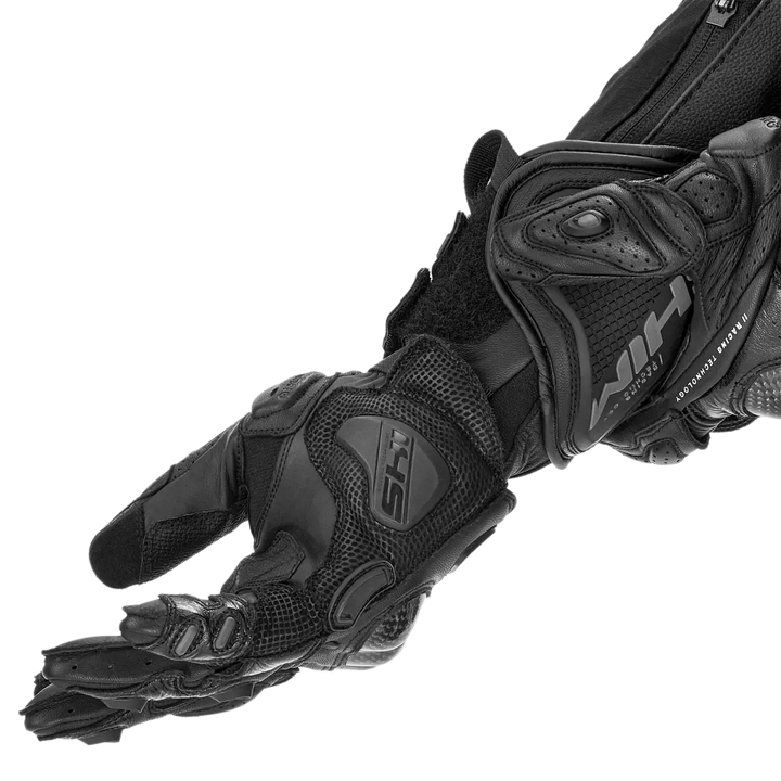 Feito de couro de cabra durável e reforçado com Kangarooine superlástico e durável na palma da mão. Eles são carregados com Proteção da junta reforçada com fibra de carbono, SAP Hand slides, Mini slides no dedo mindinho e Recheio de armorplus em zonas sensíveis. Os dedos pré-formados com pinça entre o anel e o dedo mínimo protegem a mão ao entrar em contato com o asfalto.