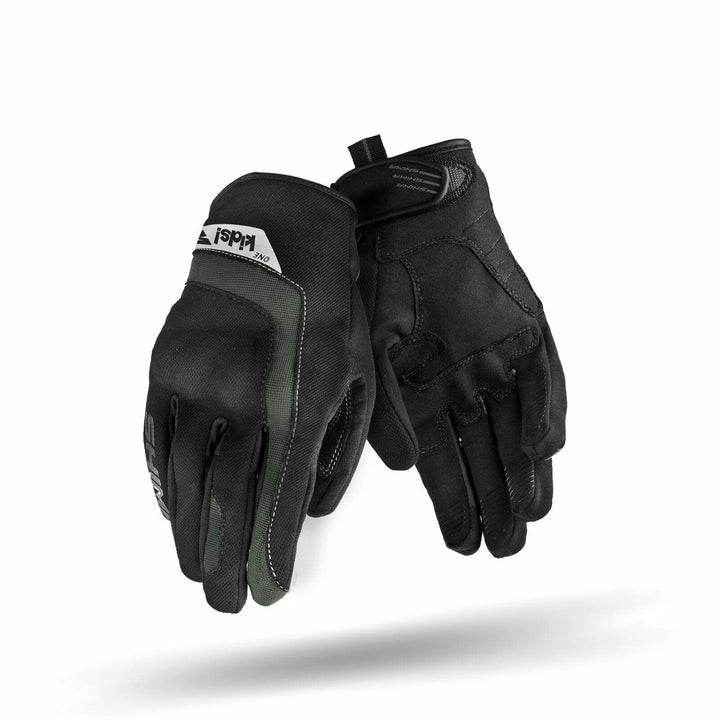 Uma senhora está equipada com uma proteção de pulso e painéis de reforço e é luvas curtas e arejadas, perfeitas para dirigir nos dias de verão.