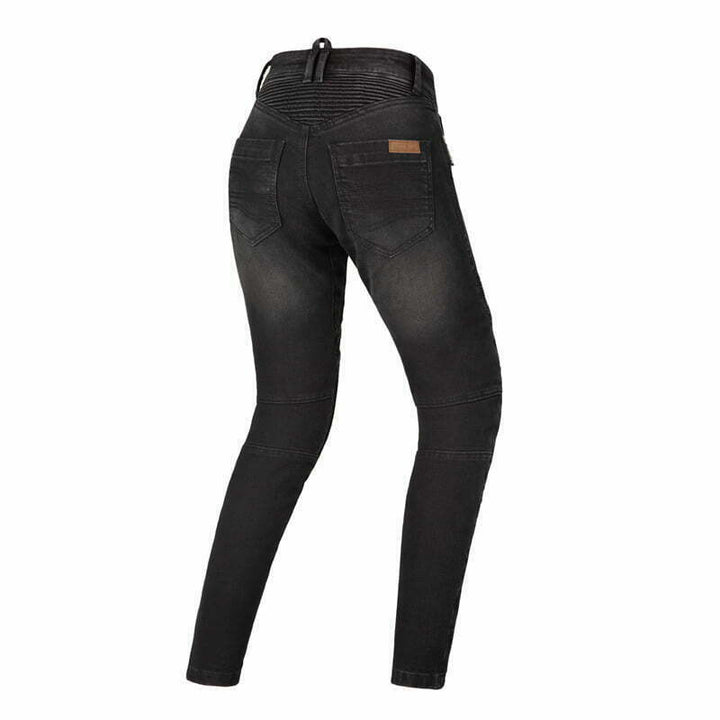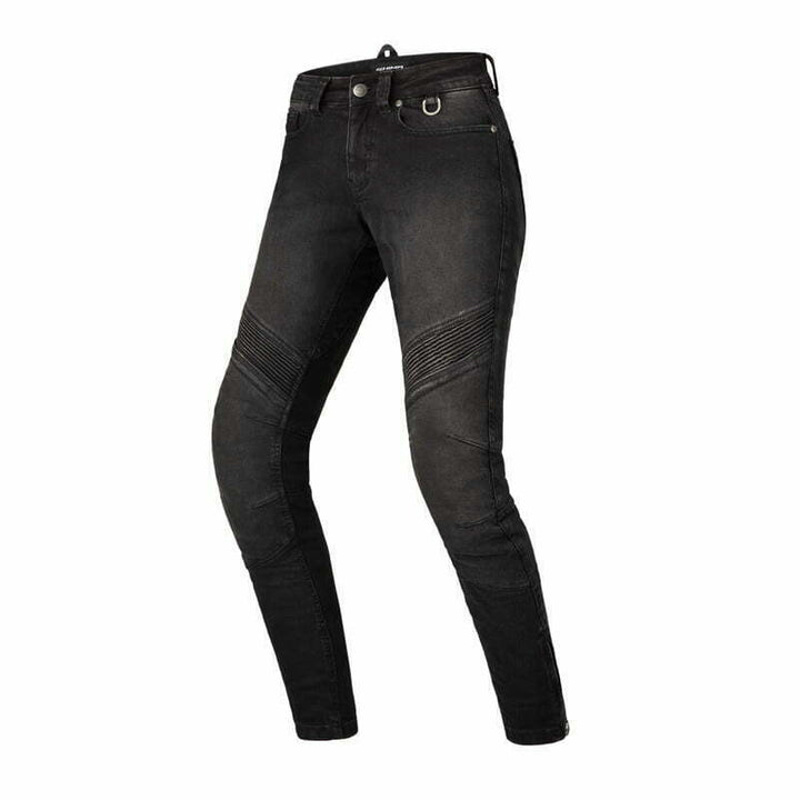 Os remendos do joelho são colocados em um bolso com acesso do lado de fora, o que facilita a transformação de calças em jeans comuns - por exemplo, durante o trabalho. As calças têm elementos reflexivos para aumentar a visibilidade no escuro e um suporte de grampo D acima do bolso para facilitar a fixação das teclas. Há um loop especial na parte de trás das calças para uma conexão rápida das calças com jaquetas femininas Shima.