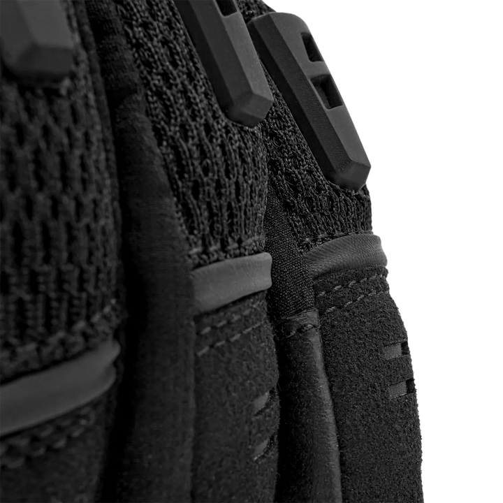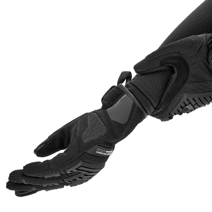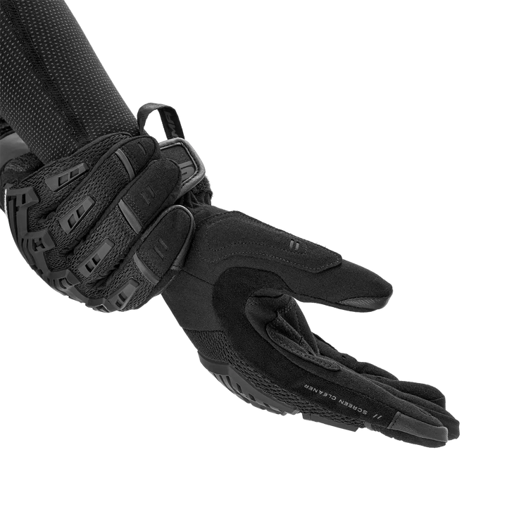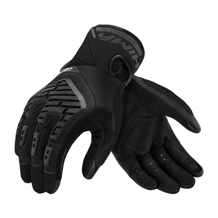 Feito com um Material de malha de ventilação E perfurações na palma da mão dão uma sensação legal, mesmo durante dias quentes. Ao mesmo tempo eles não se comprometem com a segurança - a luva está equipada com Proteção de TPR flexível sobre os dedos e dedos, reforços extras em pontos de contato em direção ao conselho e um Área de impacto reforçada com duralid que protege em caso de outono.