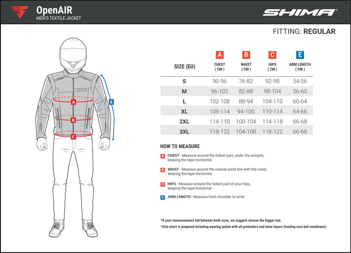 O SHIMA OpenAir contém proteção do ombro e cotovelo em um nível padrão que corresponde aos requisitos da UE e a uma proteção contra o nível 2 do CE 2. Os protetores são projetados no favo de mel de dupla camada especial. Eles fornecem proteção confiável e respira. Em uma colisão, as proteções curam e absorvem a potência máxima de choque.