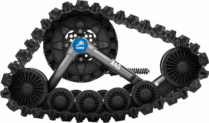 Adapter Kit Required for Mounting to Your Vehicle, Double Bearing Bolted On Wheels For Easier Serviceability, Idler and Mid-Roller Wheels, Increased Width (26 mm) Provides Better Track Support, New Geometry of Solid Beteel Frames Better Front Steering Steering Petter Economic Maintenance, The New Camso X4s is the Next Generation of Track System That Provides The Ultimate Versatility, Stability and Handling On Any Terrain All Year Round, This X4s O kit de trilha de material rodante inclui 4 faixas