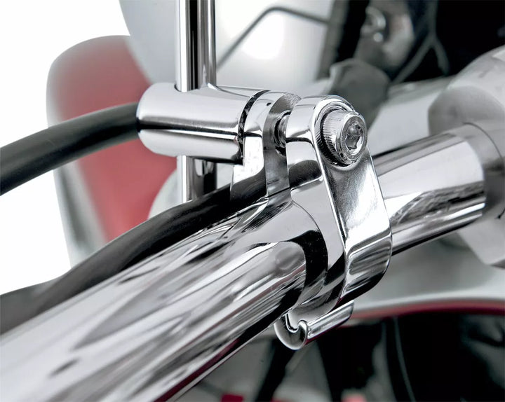 Grande proteção e estilo devastador se reúnem no Spitfire Sport Shield, construído com acrílico de 1/8 "com gráficos vermelhos, totalmente ajustável; montagem/desmonta em segundos; cabos de 7/8" e 1 "guidão, feitos, para redondos ou retangulares capitões