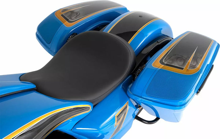 O kit inclui tampas de alforjes de substituição de substituição de alto impacto, tampas, churrasqueiras, ilhós, arnês de arame e hardware necessário, desmontam facilmente para tinta, aceita o OEM e as travas de pós-venda, o amplificador exigido e as opções.