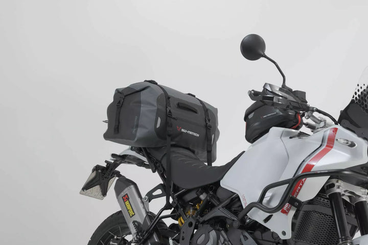 Welded Outer Pocket, Molle Adapter for Attaching Accessory Bags, Universal Fit for Almost All Motorcycles, Made of Sturdy 500D PVC, Waterproof, Extremely Durable Roll, Waterproof, Extremely Durable Handle Lugage Rolla Waterproof Roll Closure and Taped Seams, Reflective Details For Increased Safety On The Road, 1 x Drybag 350 Tail Bag, 4 x Loop Straps, 1 x Adhesive Protective Foil, Mounting Instructions, Size: 58,0 x 28,0 x 28,0 cm / 22,0 cm / 22