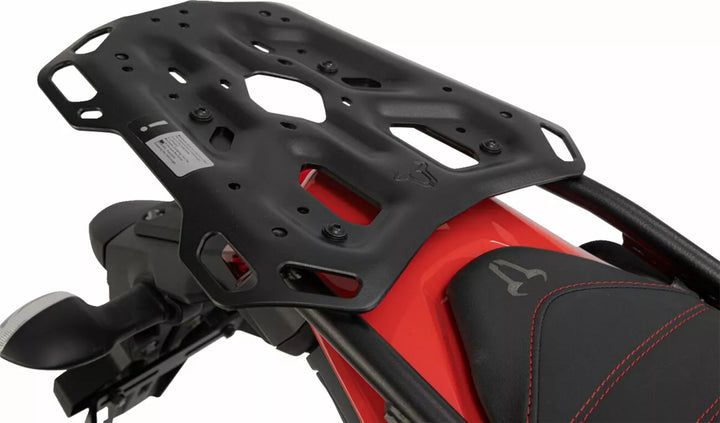 Rack extremamente robusto para passeios longos e passeios off-road, processos de fabricação exclusivos e sua forma otimizada dão uma dose extra de estabilidade ao rack, sua extrema durabilidade durante vibrações, impactos e alto peso foi testada no laboratório e off-road durante casos de condição mais severos. Sysbag com placa adaptadora está disponível separadamente com o kit adaptador apropriado, oferece kits adaptadores para anexar casos superiores de givi, krauser e shad, equipamento fácil de bagagem em numerosos e fastos de fios de fios de 25 mm: 4. 32,9 cm).