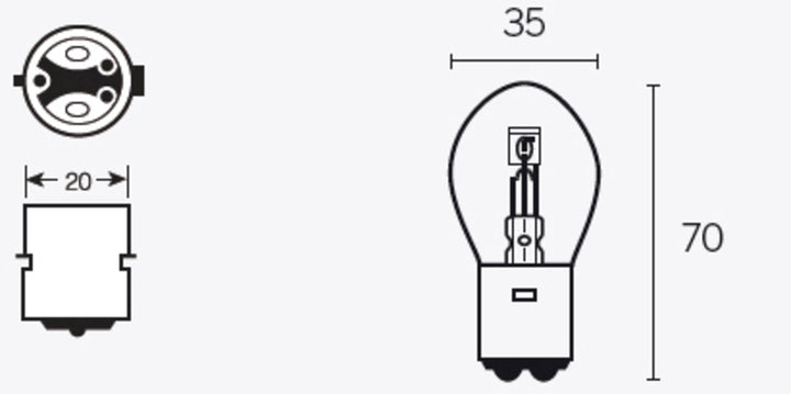 V lâmpadas de substituição de peças são essenciais para sua segurança, para ver e ser ver; Seja em sua motocicleta, quad ou scooter.b35 bulbs12v - 35/35wfitmentBa20d/732715,17 Base de lâmpada: BA20D Homologia: homologado e homologué Força: 35/35W Tensão: 12V