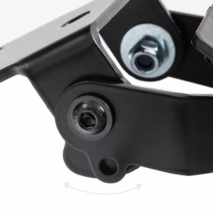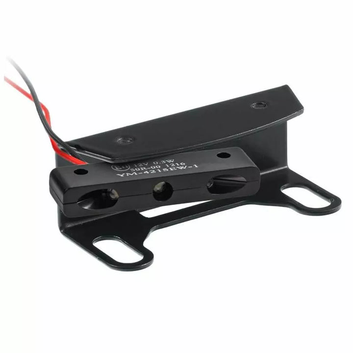 O suporte da placa é extremamente durável e à prova de intempéries., Pó preto revestido. , O titular da placa pode ser usado para qualquer tipo de placa (largura de 175 mm)., Nenhuma modificação da carenagem necessária., Ajuste de rolagem do ângulo de ancinho., Suporte ao indicador ajustável em 3 posições. Placa., Indicador Especial Montagens de luz (vendidas separadamente) necessárias para as luzes indicadoras de estoque., Kit inclui: 1 suporte da placa incl. Kit de montagem, luz da placa LED "E aprovado" incl. Suporte., Luz de volta com suporte.