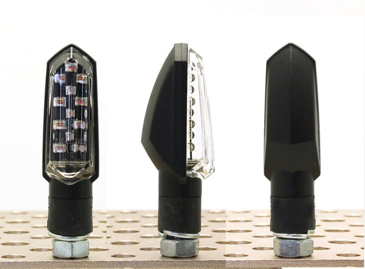 Dê à sua alta elevação moderna com V-BILLINKERS da BID da parte - discreto, poderoso e CE aprovado Para usar dianteiro e traseiro. Com revestimento preto e vidro tonificado, eles se misturam elegantemente na motocicleta enquanto fornecem uma luz nítida e clara.